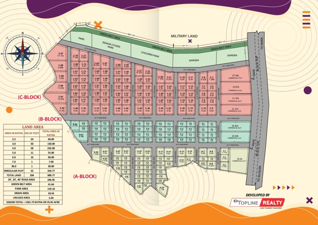 Introducing the Darjeeling View Township, a haven of tranquility nestled along Khaprail Highway in Tarunjubari, near Khaprail Bazaar, Matigara. This meticulously planned project offers an array of amenities designed to enhance your quality of life. Enjoy the convenience of 33 & 40 ft internal metal roads, ensuring smooth connectivity within the township.